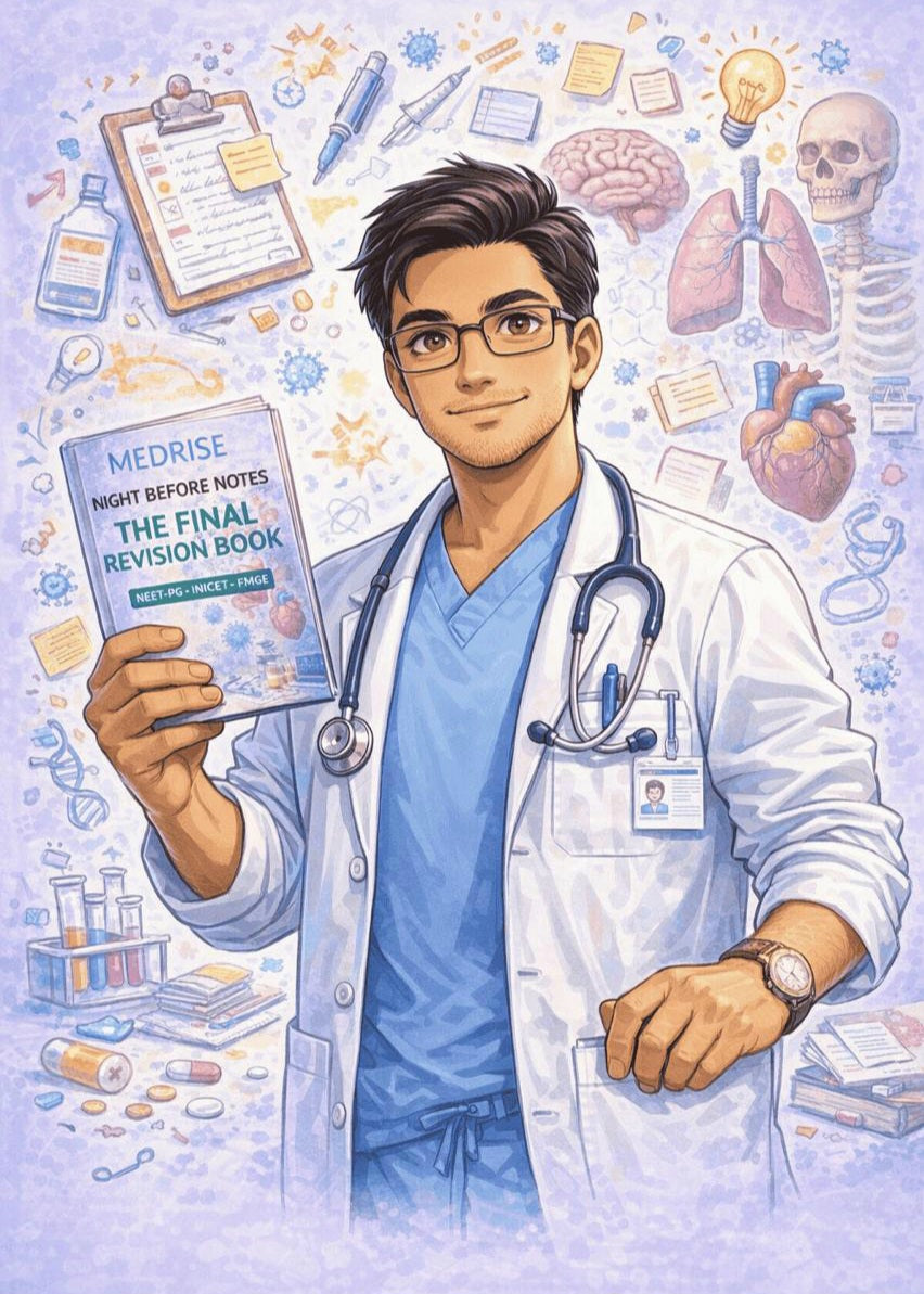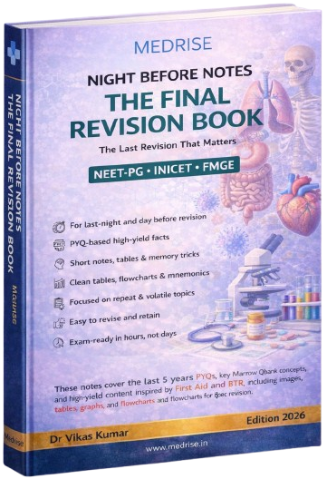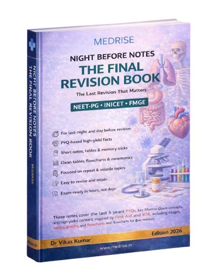 MEDRISE Night Before Notes are high-yield, exam-oriented revision notes designed for quick revision in less time for NEET-PG, INICET, and FMGE.